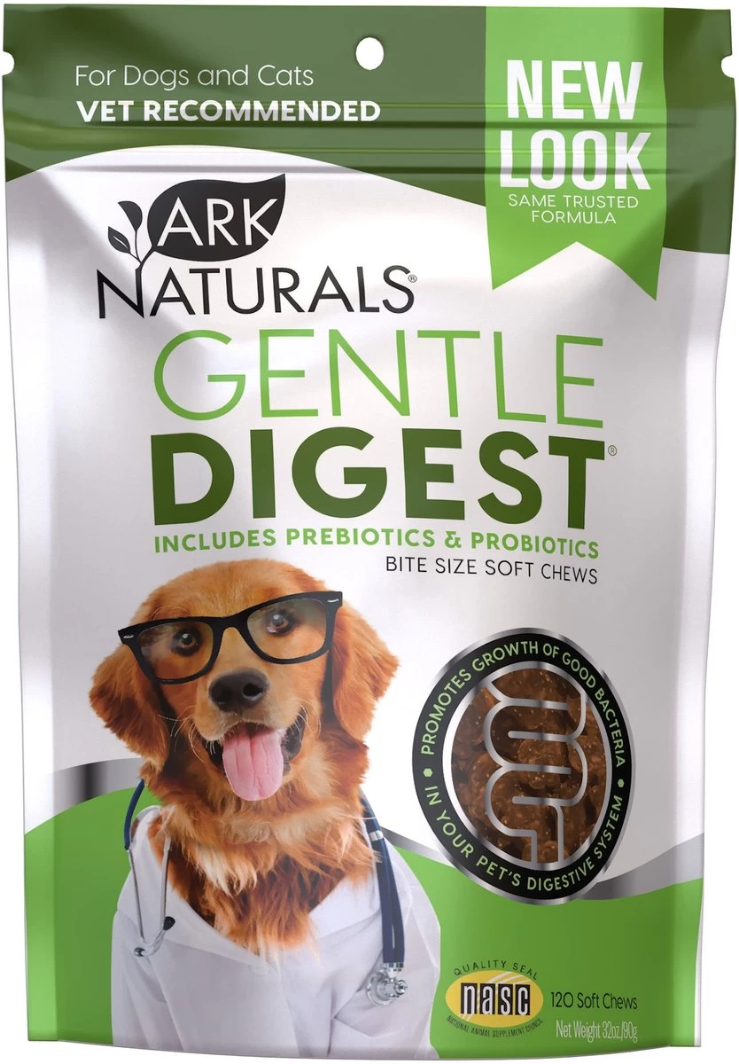 All mammals (including dogs, cats and humans) have numerous beneficial bacteria living in their digestive tracts (gut). Gentle Digest™ contains prebiotics and probiotics. Probiotics provides a source of beneficial intestinal bacteria and also helps to encourage their growth.