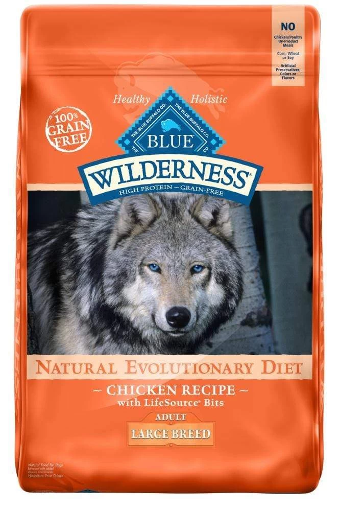 - GRAIN FREE DOG FOOD: BLUE Wilderness large breed dog food is made with the ingredients to help support your large breed’s unique needs including glucosamine and chondroitin for joint health. Plus, it contains omega 3 & 6 fatty acids for skin and coat health.