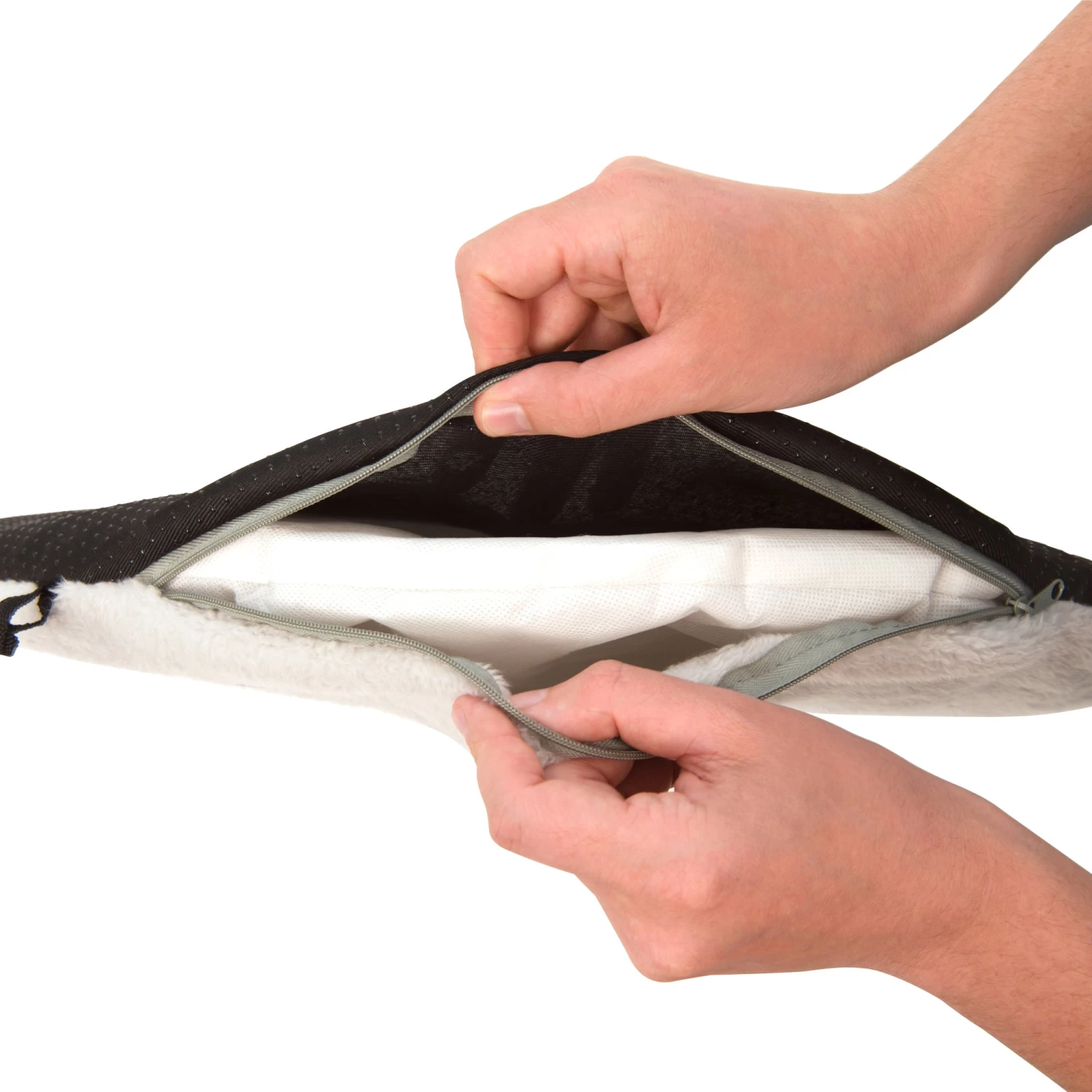 - Open on both ends, with an opening featuring a plush ball toy on a string