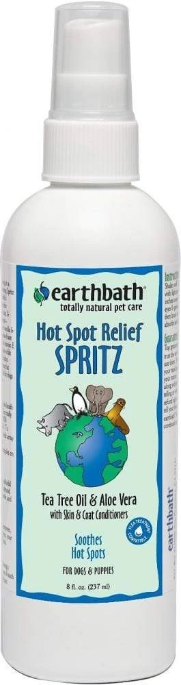 Does your dog need a soothing natural aid for relief of hot spots, itching, scratching and skin irritation? Our Hot Spot & Itch Relief spritz is the simple solution, blended with soothing melaleuca (tea tree) oil, nature’s finest hot spot ointment. This spritz re-moisturizes skin and coat and imparts a healthy shine and supple softness – without leaving oily residue. Sumptuous premium conditioners, colloidal oatmeal, aloe vera and vitamin E help to condition, soothe & rehydrate skin while creating show quality shines – between baths. Use in conjunction with our popular shampoos. Safe for dogs over 6 weeks old. Not for use on cats.
