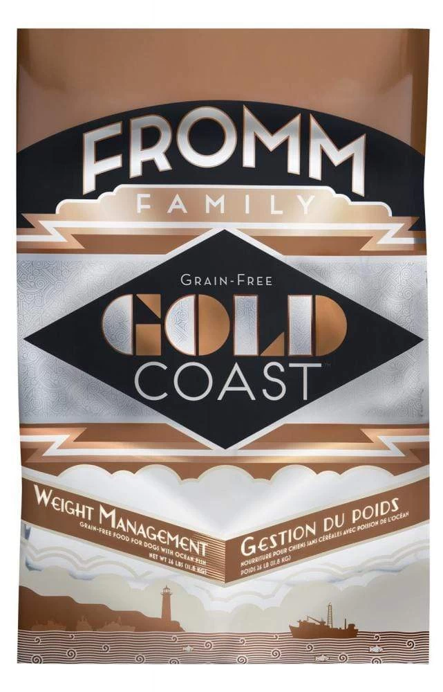 Fromm Gold Coast Weight Management Dry Dog Food aims to help your dog achieve and maintain a healthy weight by providing balanced nutrition through optimal protein and fiber levels without the extra calories and fat! Made with wild caught whitefish and salmon as well as fresh produce, Fromm Gold Coast Weight Management Dry Dog Food also has added vitamins for the ultimate support with managing weight. Grain free with no artificial colors, flavors, or preservatives that any pup is sure to love, even with the missing calories.