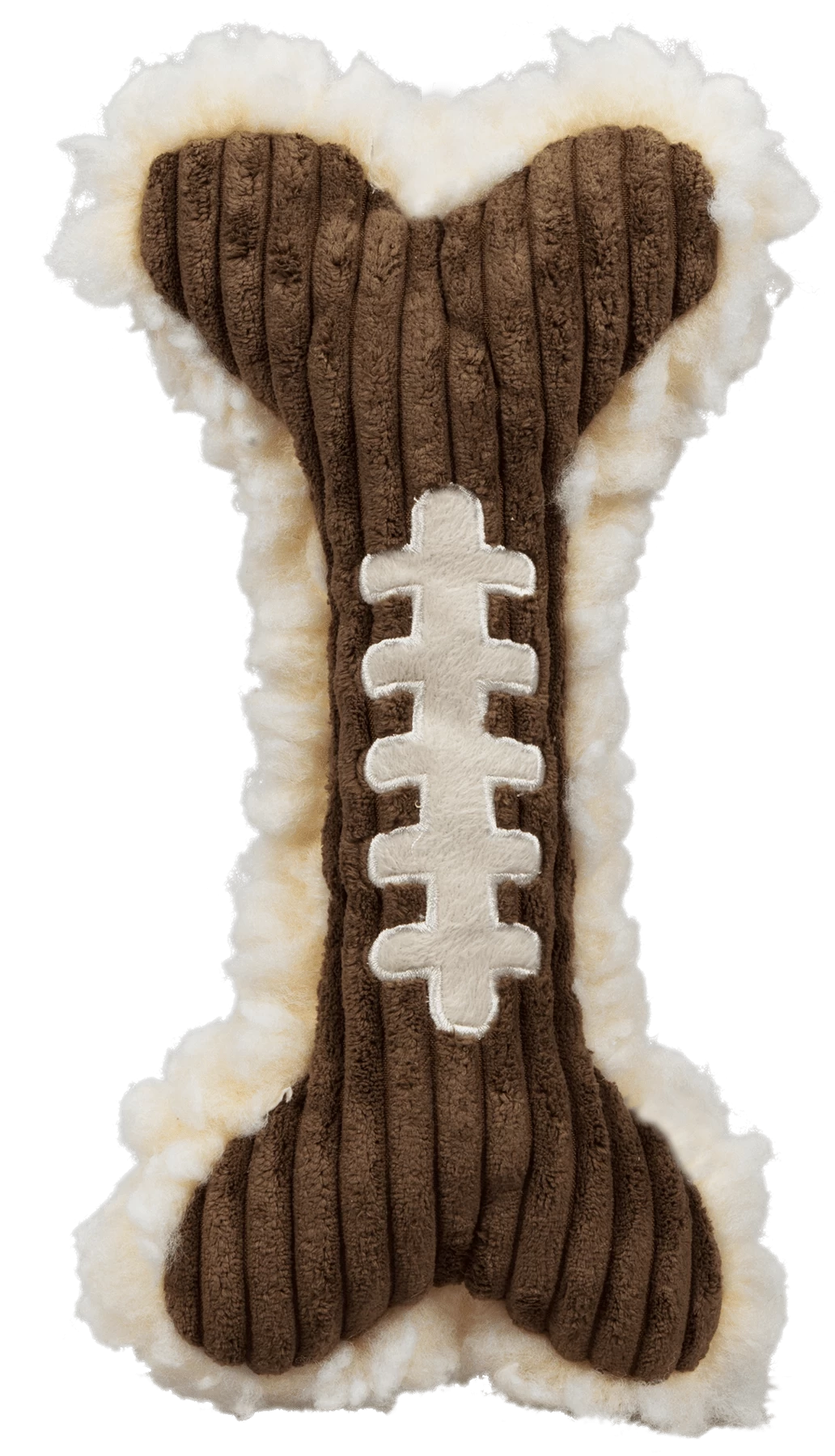 Fall is for family, friends, and FOOTBALL! Be a team player this season and let your dog in on the fall fun. Our Pigskin Bone is the best of both worlds, the back is made up of our super soft HuggleFleece® material and the front has our signature corduroy, completed with the laces of a football. Make everyday a game day with our 12-inch HuggleFleece® & Corduroy Pigskin Bone!
