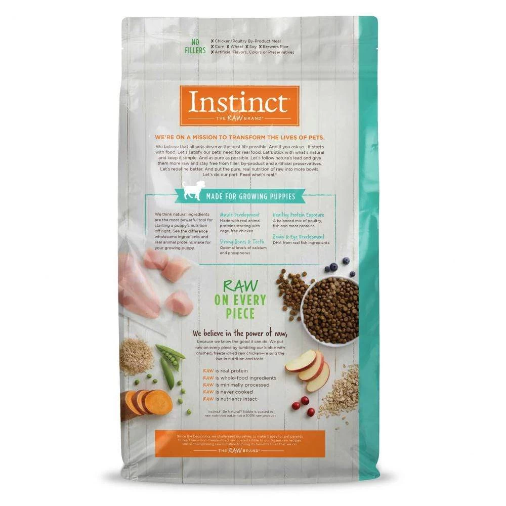 Natural nutriton for your puppy begins here. Instinct Be Natural Real Chicken & Brown Rice Recipe for puppies starts with cage-free chicken and never contains filler, corn, wheat, soy or by-product meals or artificial preservatives and colors. Guided by our belief in the power of raw, each piece is tumbled with crushed freeze-dried raw chicken – raising the bar in nutrition and taste.
