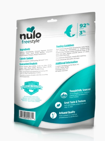 Treat your good pup to one of our Salmon Jerky Strips! Perfect for tearing up into pieces or offering whole as a reward for a good day’s work.You won’t find any sugars or cane molasses in this savory treat – just 92% salmon and 3% strawberries as well as patented probiotic BC30 to keep your little athlete’s tummy feeling 100%.