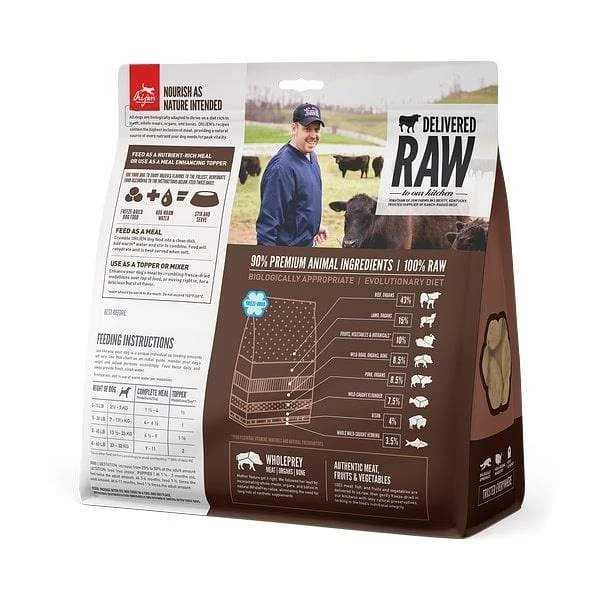 As we learn more about a dog’s natural diet, many pet parents are looking for the best way to provide the most natural diet possible. Short of hunting and preparing daily catch, ORIJEN Regional Red Freeze-Dried dog food is the closest thing you’ll find! Regional Red Freeze-Dried is formulated with 90% meat ingredients, all local and ranch raised like Black Angus beef, wild boar, lamb and heritage pork and bison for the crucial fats and proteins, with the remaining 10% a selection of wholesome fruits and vegetables to provide essential antioxidants and vitamins. All ingredients are delivered fresh and gently freeze-dried in ORIJEN’s own kitchens without cooking or added preservatives to lock in the natural, life-giving nutrients and flavors abound in a wild diet. Whether provided as a main meal, or a supplement to their kibble, dogs will surely benefit from the arrival of new flavors and nutrients in ORIJEN Regional Red Freeze-dried dog food!