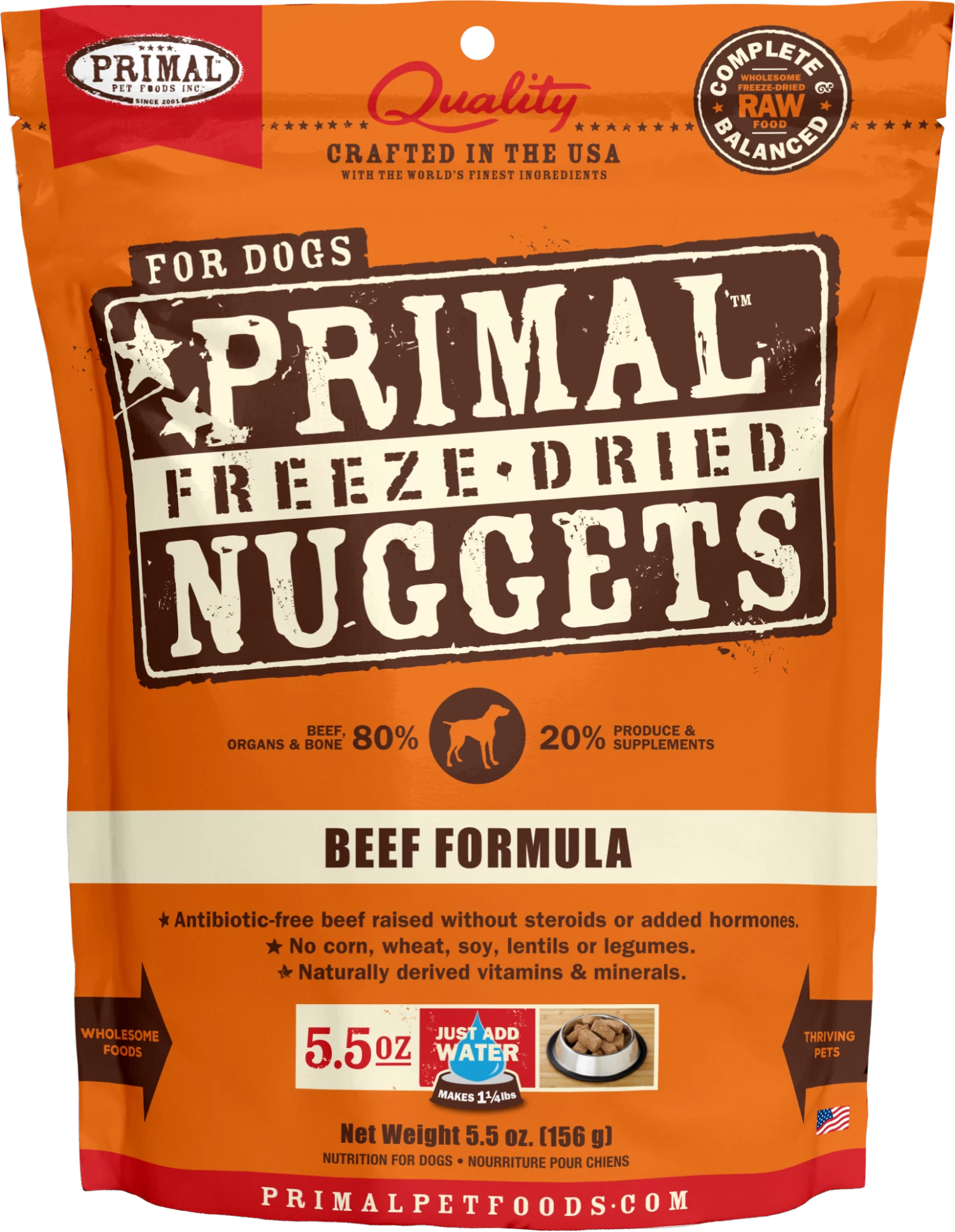 Primal Freeze-Dried Formulas offer you the convenience and benefits of a well-balanced, safe and wholesome raw-food diet without having to grind, chop, measure or mix the ingredients yourself. At Primal Pet Foods, we have taken the time to carefully formulate and produce a nutritious, fresh-food diet that is easy for you to serve and delectable for pets to devour. The proof is watching them lick the bowl clean while thriving happily and healthfully!