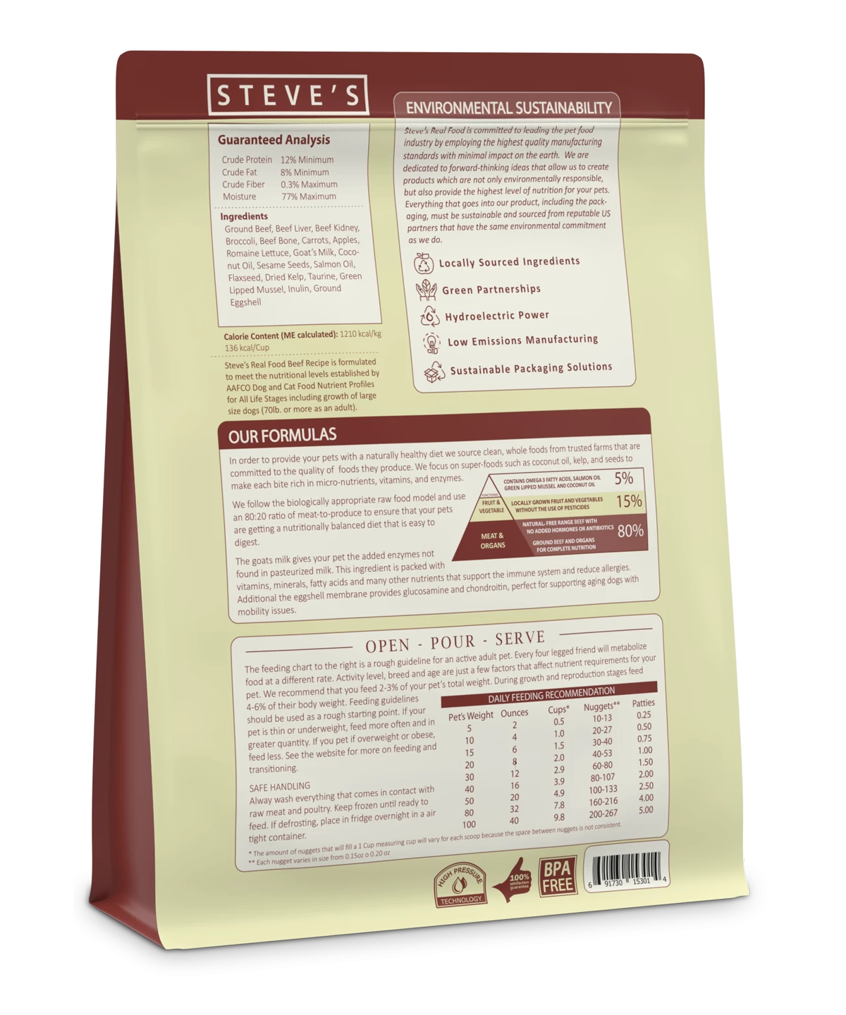 Pet owners love Steve’s Real Food Beef Diet for its high fat content which provides the dog with the energy it needs. Unlike the Chicken and Turkey Diet; Beef contains apples for extra fiber and the beef provides healthy fats to help an underweight dog. One of the differences between Steve’s and other raw meat diets is our meat to veggie ratio. We use a meat to produce ratio of 80% to 20% in order to give your dog the foods that provide the protein and all the essential vitamins and minerals that help fight diseases and promote strong bones, muscles and organ function.