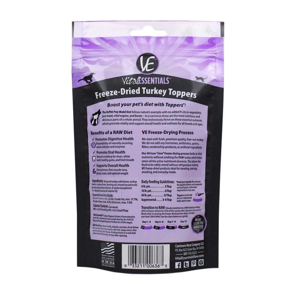 Dogs & Cats know what they want. They want real meat for dinner. Give your loved one a taste of real meat with our Turkey Toppers for dogs and cats. No grains, no gluten, no fillers – just real, fresh meat. Locally sourced from America’s heartland, with a perfect blend of fresh, wholesome turkey, bone and organ meats; Offer as a top dress on kibble or canned or as an appetite stimulant for picky eaters, a protein boost, or simply to get the benefits of a living raw food into your pets everyday diet. Anyway you serve it, you can’t go wrong; the benefits are visible within weeks: weight control, thick glossy coats, healthy digestion, firm muscles, strong bones, white teeth, fresh breath, healthy gums, and high energy.